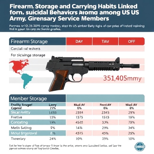 A groundbreaking retrospective cross-sectional study has delivered new insights into the relationship between firearm storage practices and suicide risk among military service members. Conducted with meticulous controls for confounding variables such as lifetime mental health disorders and histories of stressful life events, this research highlights a nuanced but significant connection: unsecured firearm storage correlates strongly with an increased risk of suicide across all monitored time frames. The implications extend beyond firearms, suggesting that carrying any type of weapon may be indicative of elevated suicide risk, a revelation that challenges traditional assumptions in military behavioral health.